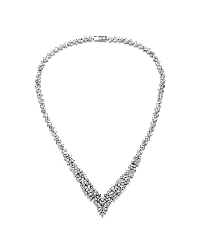Exquisite Sterling Silver Clear Princess Cluster Necklace with White Gold Plating and Cubic Zirconia Accents