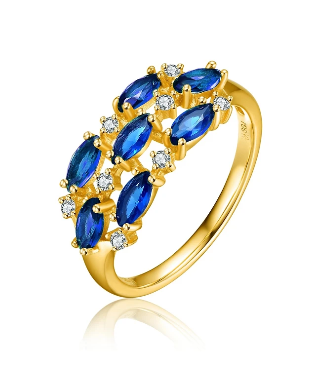 Sterling Silver with Gold Plated Marquise and Round Cubic Zirconia Coctail Ring