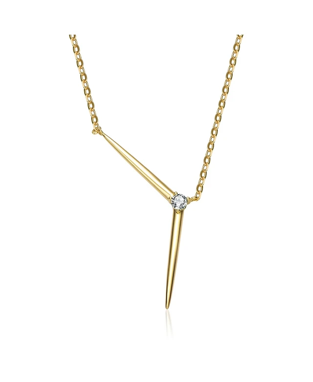 14k Yellow Gold Plated with Green Cubic Zirconia Solitaire Spike Pendant Y-Necklace Sterling Silver
