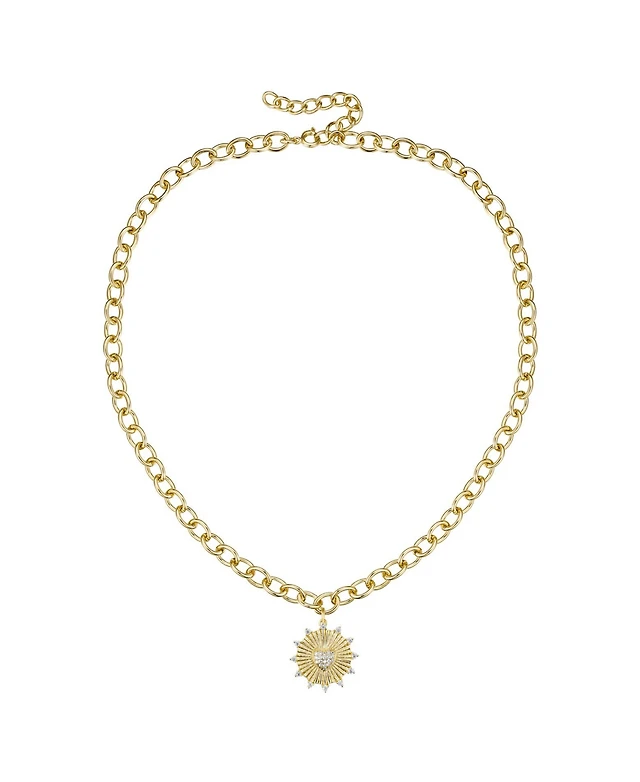 Sterling Silver 14K Gold Plated and Red Cubic Zirconia Round Pendant Necklace