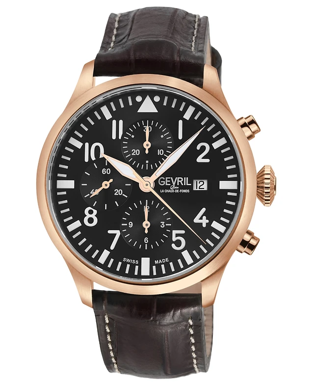 Gevril Men's Giromondo Swiss Quartz Black Genuine Leather Strap Watch 42mm