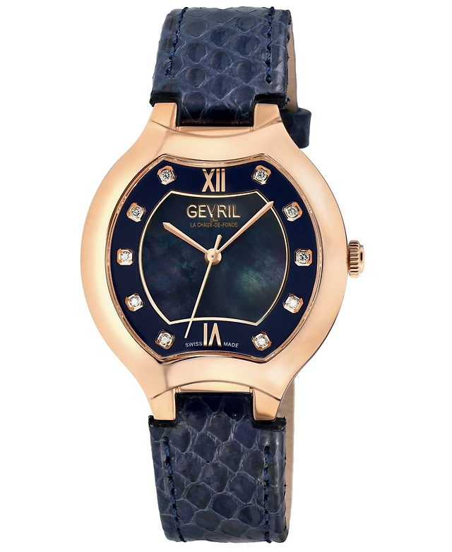 Gevril Women's Genoa Swiss Quartz Italian Blue Leather Strap Watch 36mm