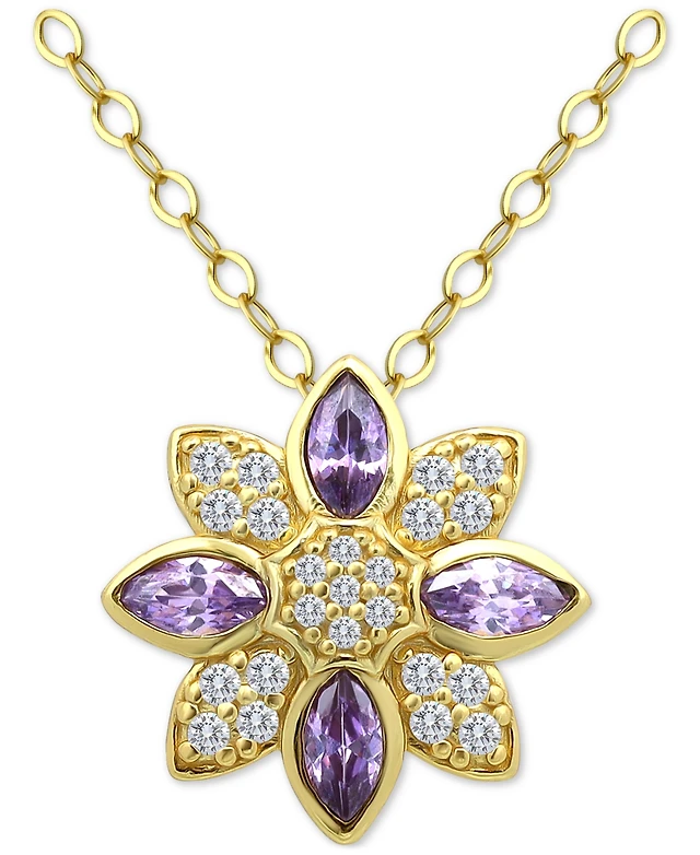 Giani Bernini Cubic Zirconia Marquise & Pave Flower Pendant Necklace in 18k Gold-Plated Sterling Silver, 16" + 2" extender, Created for Macy's
