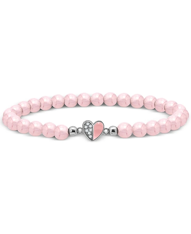 Giani Bernini Rose Quartz & Cubic Zirconia Heart Bead Stretch Bracelet in 18k Gold-Plated Sterling Silver