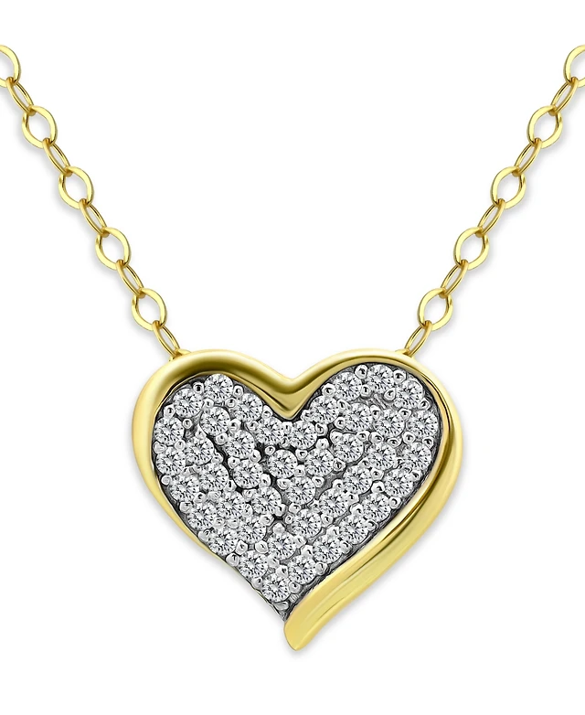 Giani Bernini Pave Cubic Zirconia Heart Pendant Necklace (5/8 ct. t.w.) in 18k Gold Over Sterling Silver, 16" + 2" extender, Exclusively at Macy's