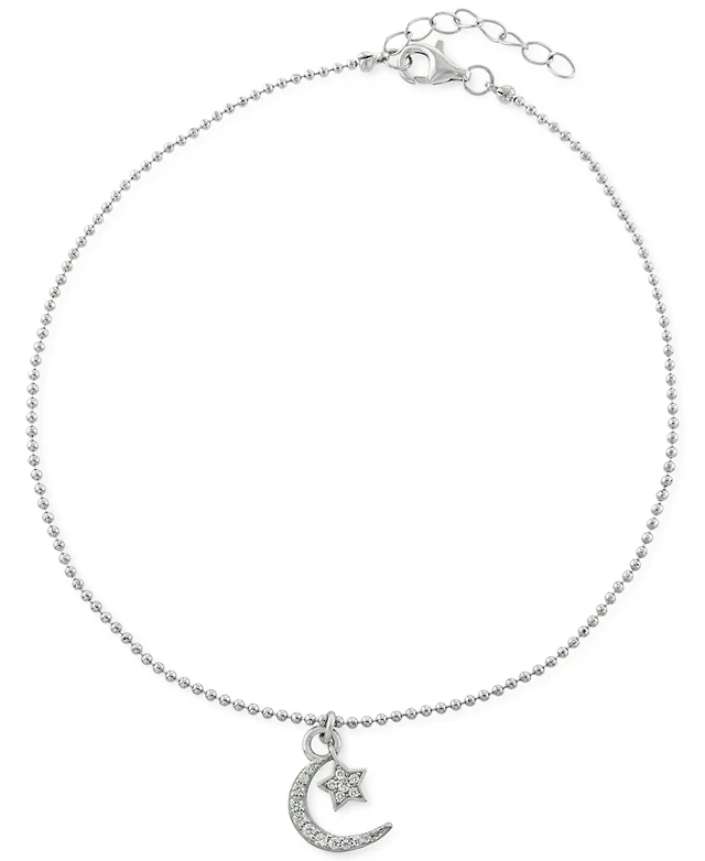 Giani Bernini Cubic Zirconia Moon & Star Charm Ankle Bracelet in Sterling Silver, Created for Macy's