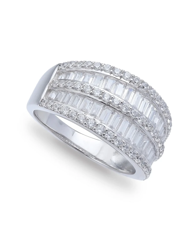 Cubic Zirconia Multi Row Princess, Baguette & Pave Band (4-1/5 ct. t.w.) Sterling Silver or 18k Gold over
