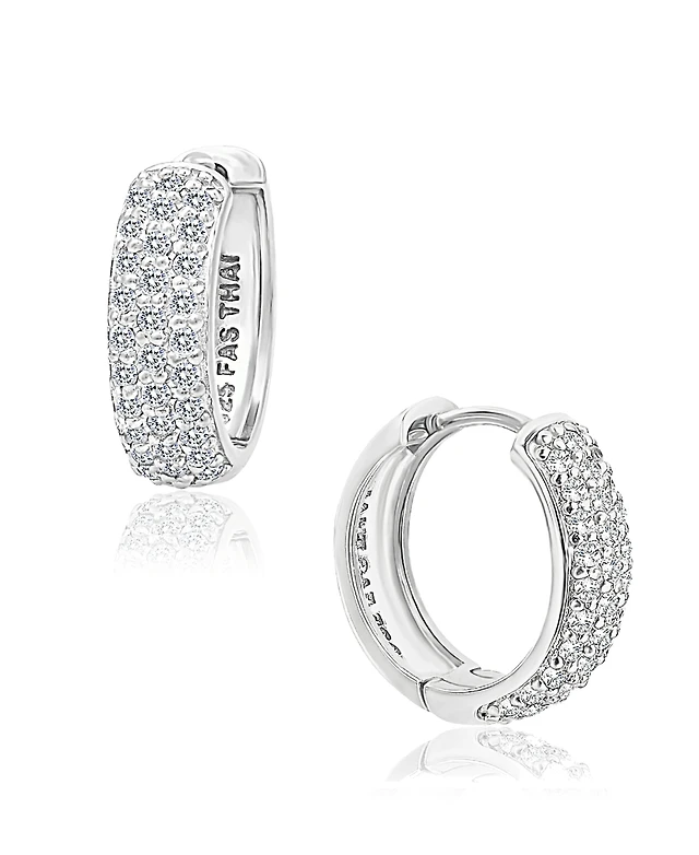 Cubic Zirconia Oval Huggie Hoop Earrings Sterling Silver