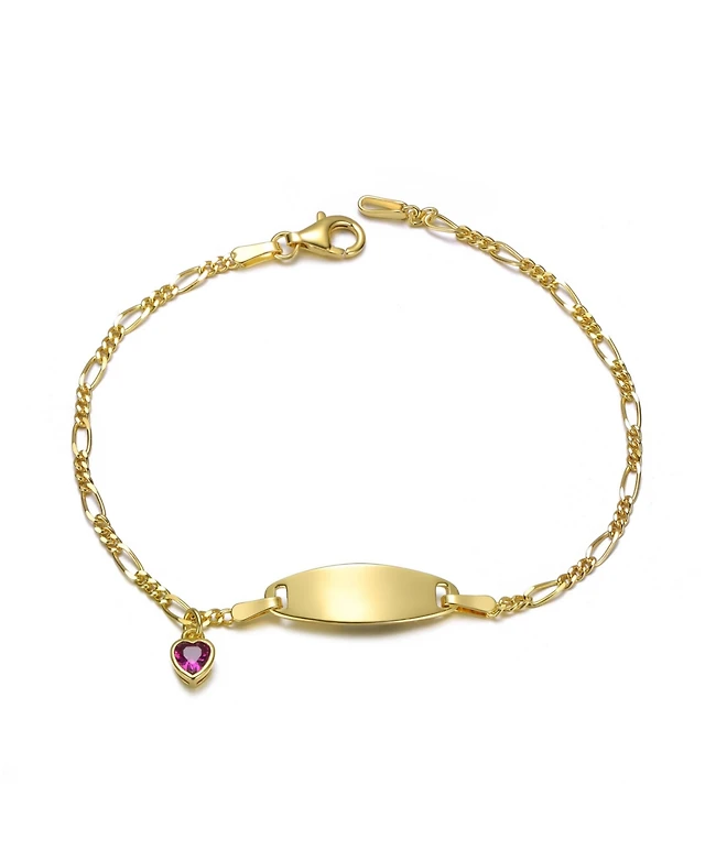 14K Gold Plated with Red Cubic Zirconia and Floral Charm Bracelet