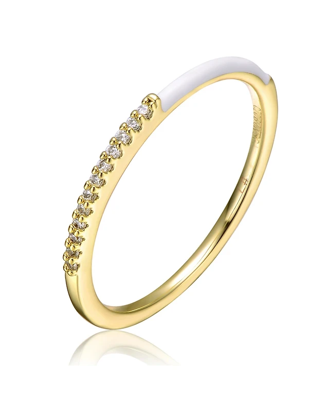 GiGiGirl Kids/Teens 14k Yellow Gold Plated with Cubic Zirconia White Enamel Half & Half Slim Stacking Ring