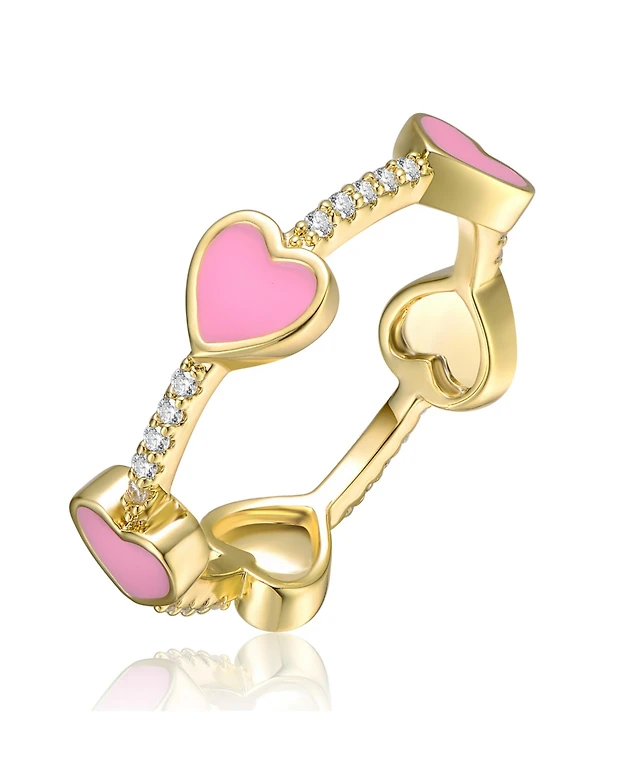 GiGiGirl Kids/Teens 14k Yellow Gold Plated with Cubic Zirconia Pink Enamel Heart Stacking Ring