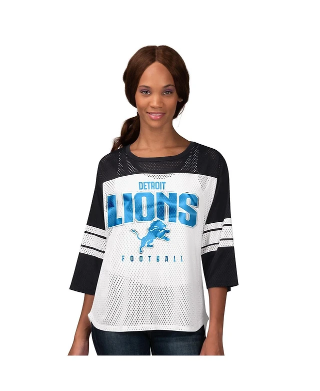 G-iii 4Her by Carl Banks Women's Black Detroit Lions First Team 3/4-Sleeve Mesh T-Shirt