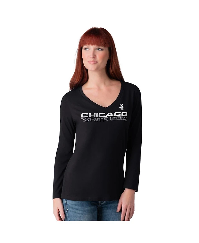 G-iii 4Her by Carl Banks Women's Black Chicago White Sox Post Season Long Sleeve V-Neck T-Shirt