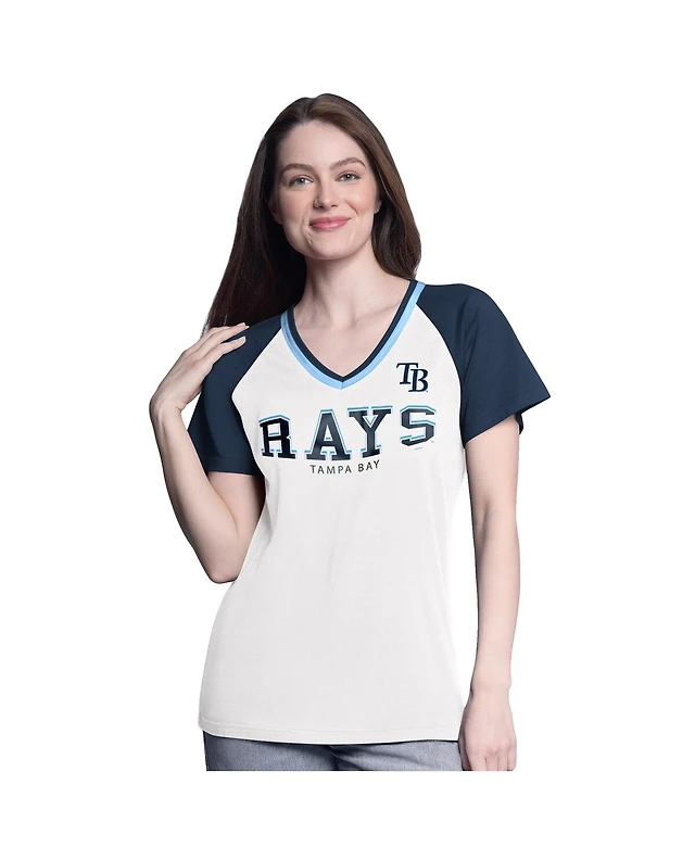 G-iii 4Her by Carl Banks Women's White/Navy Tampa Bay Rays Ball Park Raglan V-Neck T-Shirt