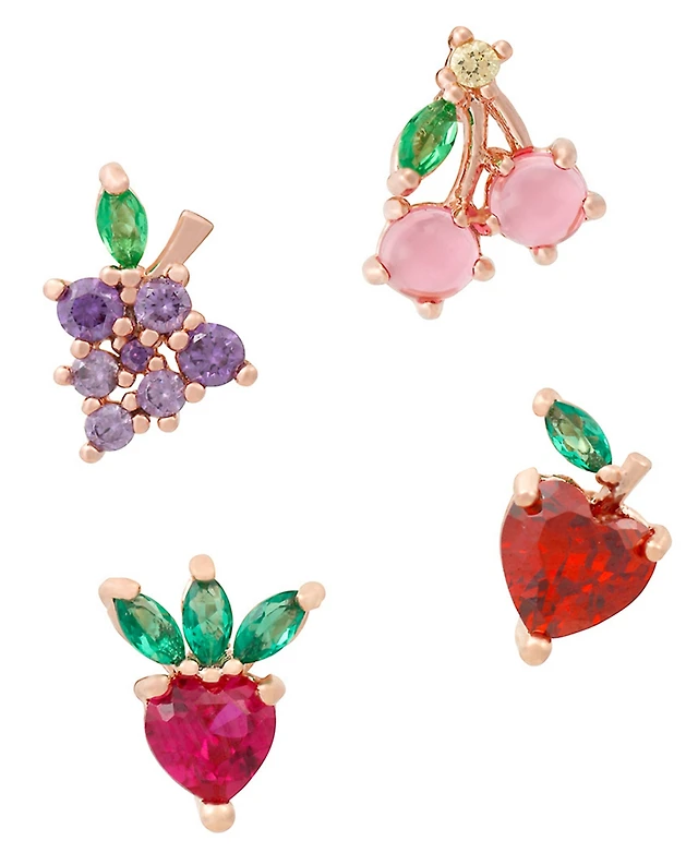 Girls Crew 18k Gold-Plated 4-Pc. Set Mixed Crystal Forever Love Single Stud Earrings