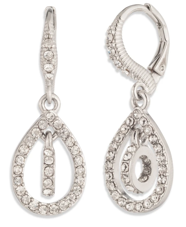 Givenchy Silver-Tone Crystal Pave Pear Drop Earrings