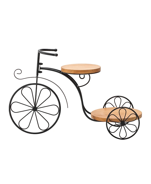 Glitzhome 18" L Metal Tricycle Planter Stand with Natural Solid Wood Tray