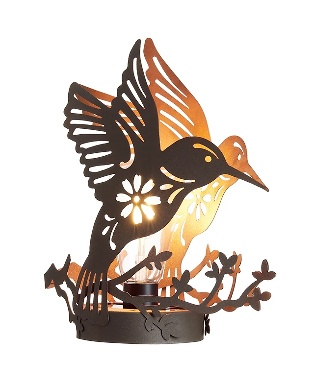 Glitzhome 9.75" H Black and Gold-Tone Metal Cutout Flying Hummingbird Silhouette Solar Powered Edison Bulb Outdoor Lantern