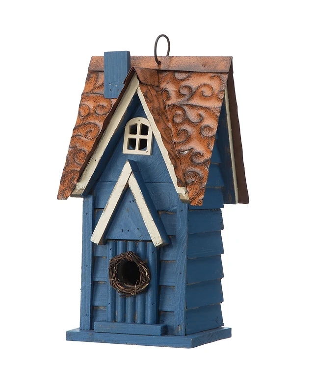 Glitzhome 12.5'' H Distressed Solid Wood Birdhouse with 3D Leaves