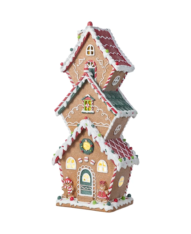 Glitzhome 18.5" Lighted Resin Christmas Gingerbread House Figurine