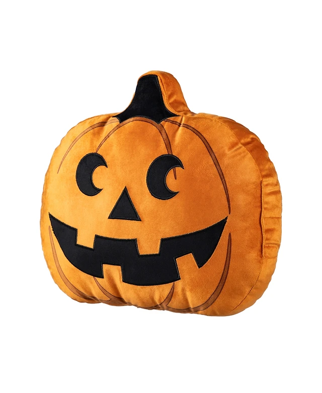 Glitzhome Fall and Halloween Fabric Double Sided Pumpkin Decorative Pillow, 16" x 5"