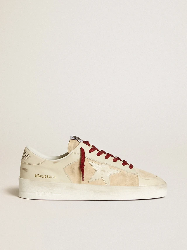 Men's Ball Star LTD in ecru leather and white mesh with brown star