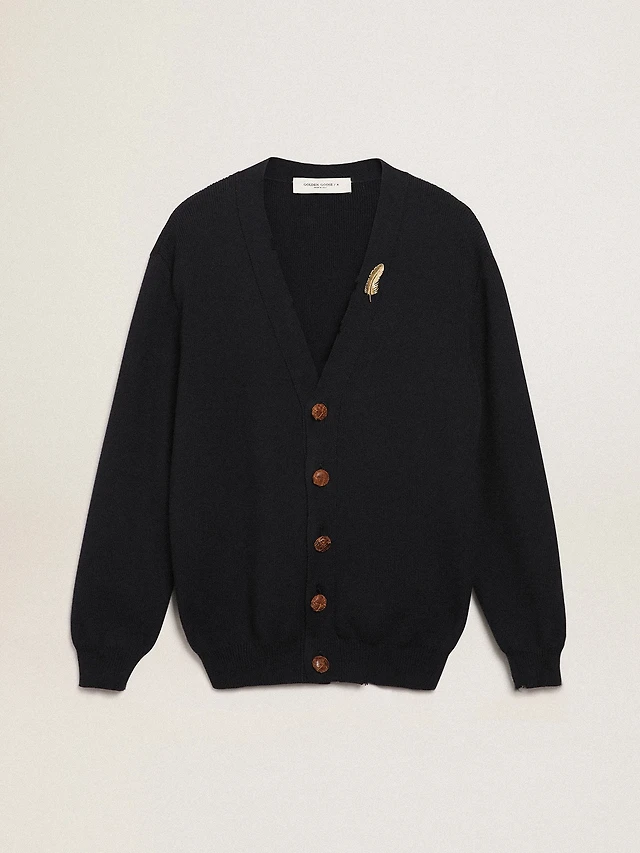 Golden Collection cardigan dark blue cotton with a distressed finish