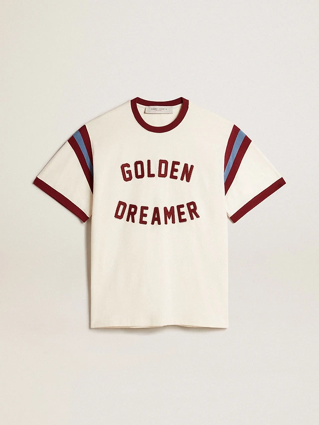 Men's T-shirt cotton jersey with white and beige patchwork effect
