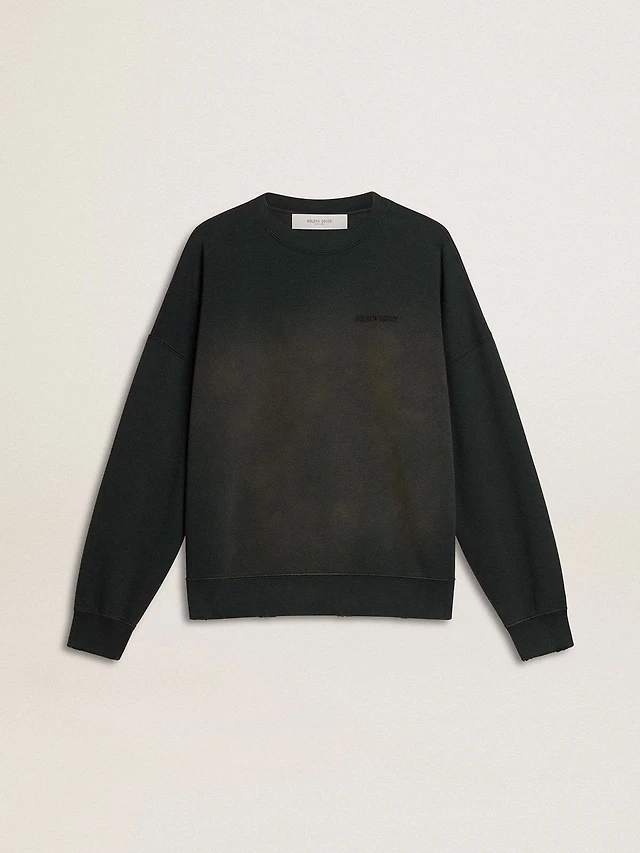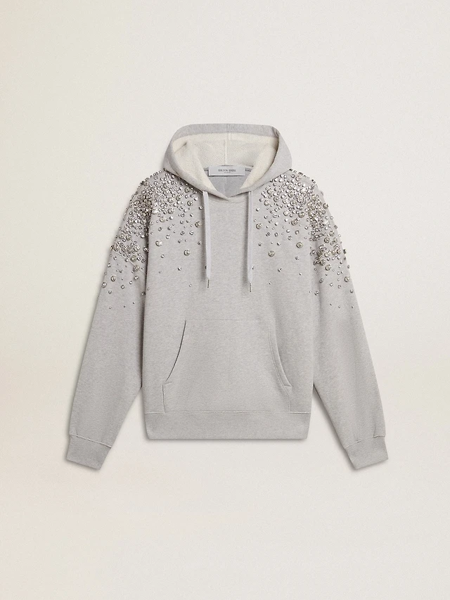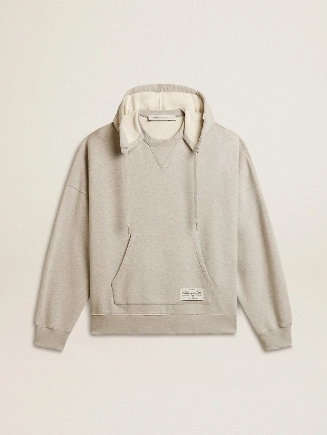 Hooded sweatshirt in worn gray with embroidered vintage logo