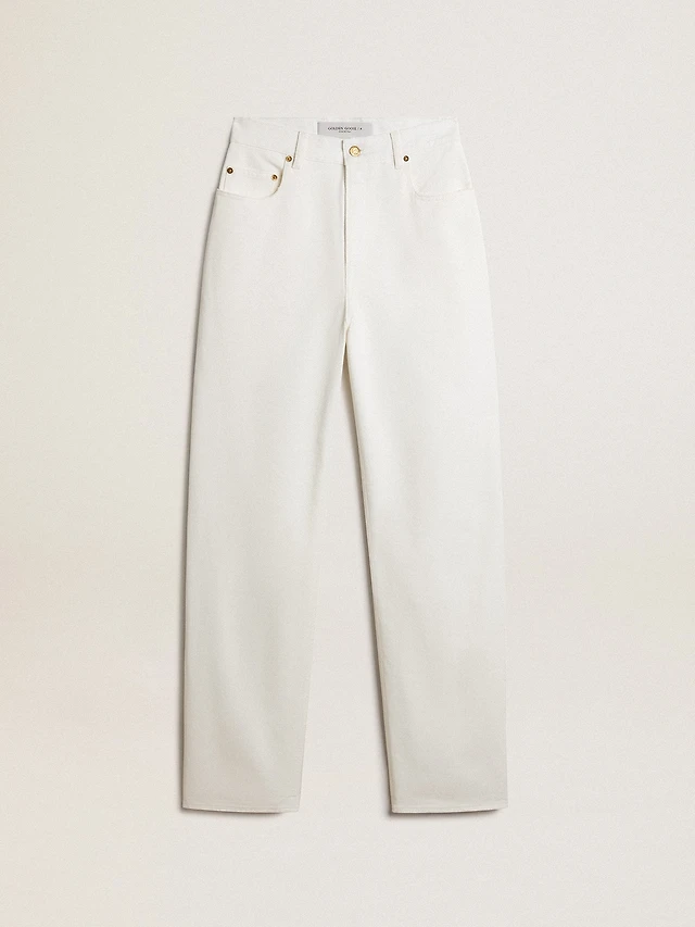 Women's optical white-colored cotton denim pants
