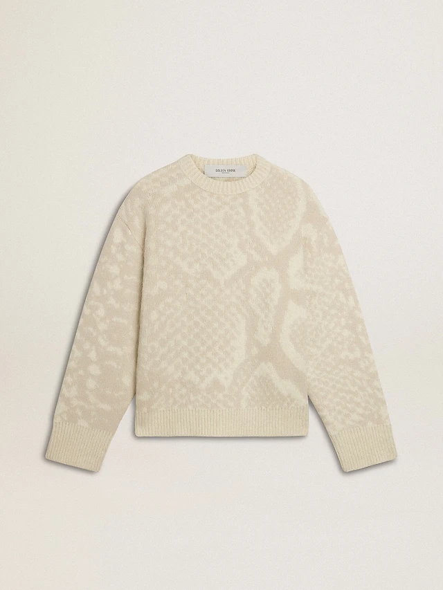 Women's light blue jacquard wool sweater with cream-colored pattern