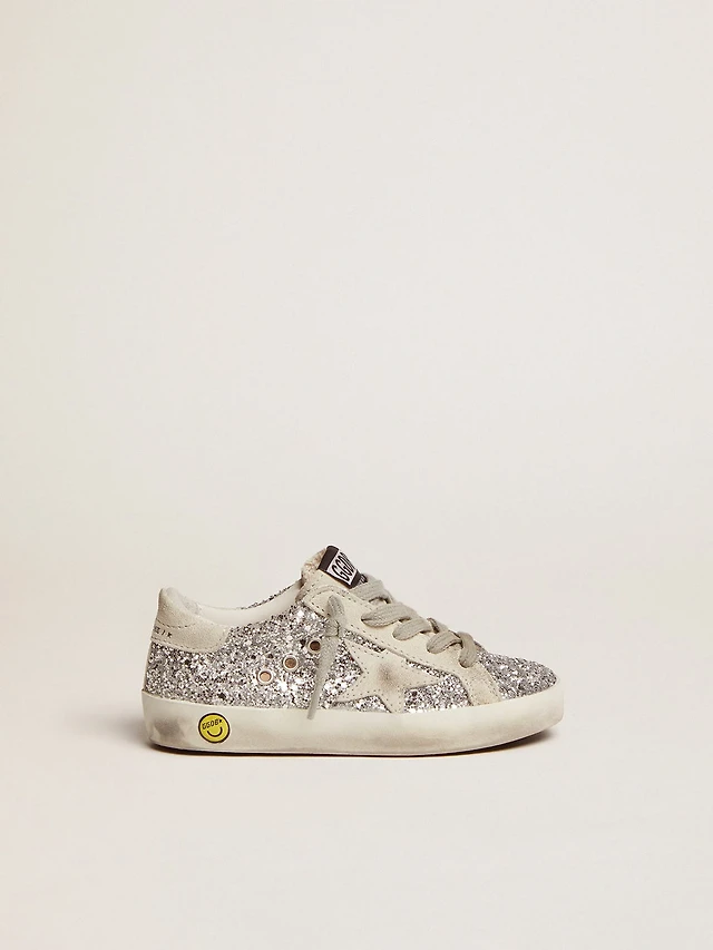 Young Super-Star sand-colored laminated-effect suede with white leather star
