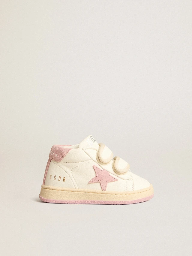 May Junior in white nappa leather and silver metallic leather with pink heel tab