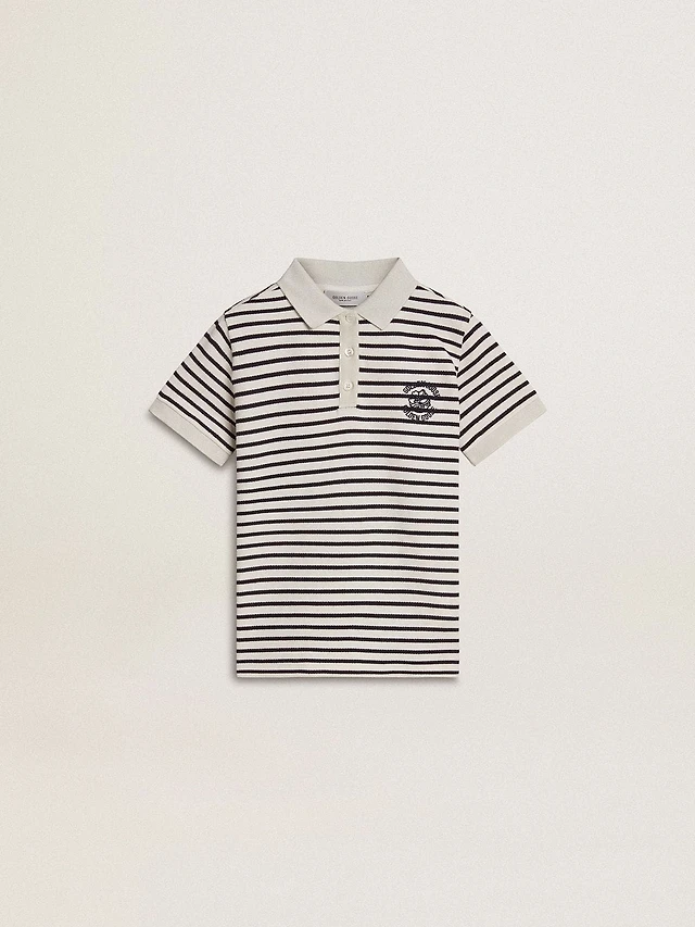 Kids white cotton polo sweatshirt with embroidery on the chest and print back