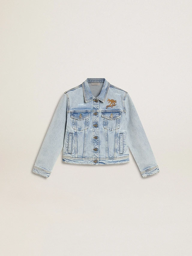 Journey white cotton crew-neck sweatshirt for girls with mascot print and crystal appliqués