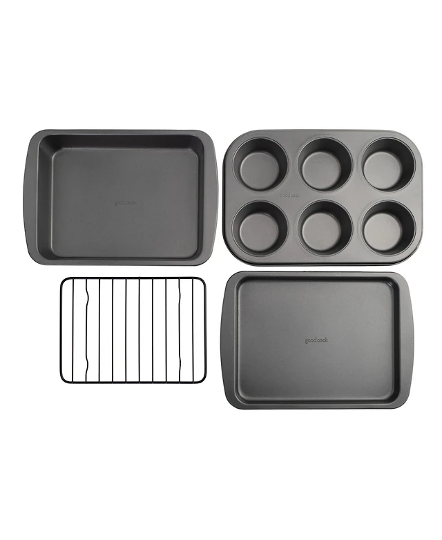 Good Cook 4 Piece Nonstick Steel Toaster Oven Set with Sheet Pan, Rack, Cake Pan, and Muffin Pan