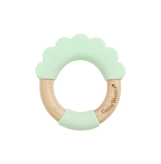 GooseWaddle Mint Lion Silicone + Wood Double Teether