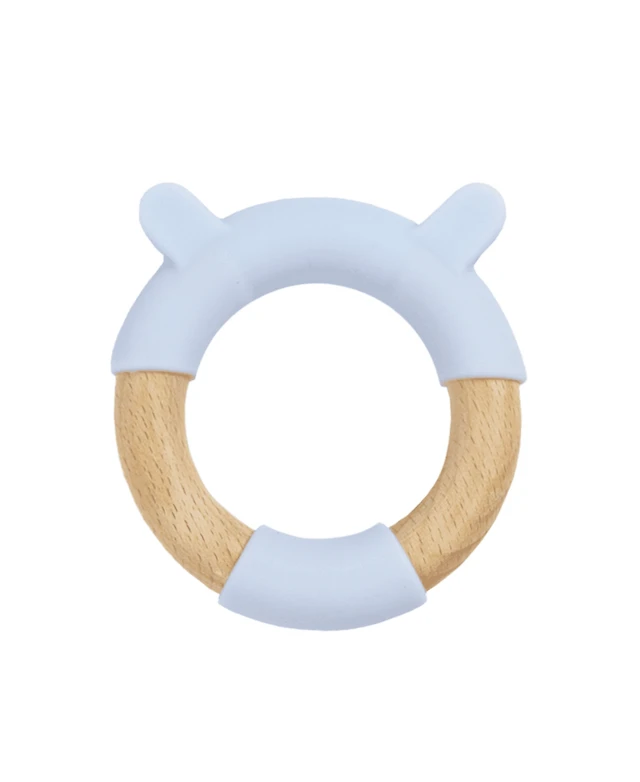 GooseWaddle Blue Bear Circle Silcone + Wood Teether