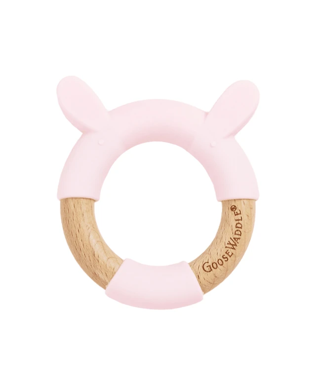 GooseWaddle Pink Bunny Circle Teether Wooden + Silicone