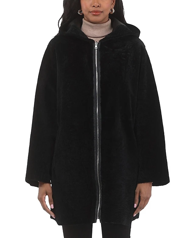 Gorski Reversible Shearling Parka Coat with Hood Trim & Cuffs Belt