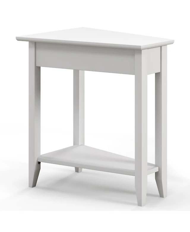 2-Tier Wedge Narrow End Table with Storage Shelf and Solid Wood Legs