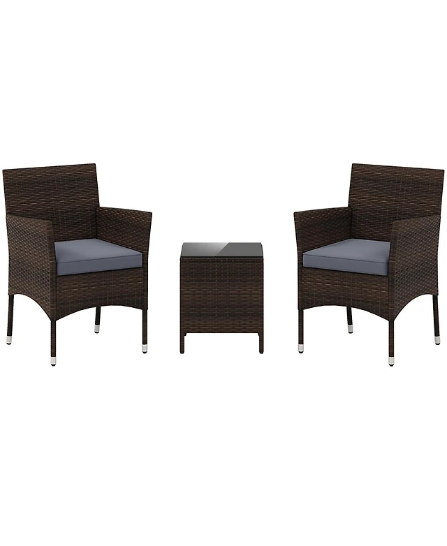 3-Piece Patio Rattan Bar Set with Tempered Glass Top for Backyard Poolside