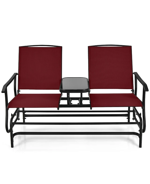 2-Person Double Rocking Loveseat with Mesh Fabric and Center Tempered Glass Table