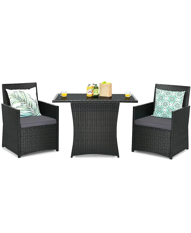 3 Pieces Patio Wicker Furniture Set with Acacia Wood Table and Washable Cushion