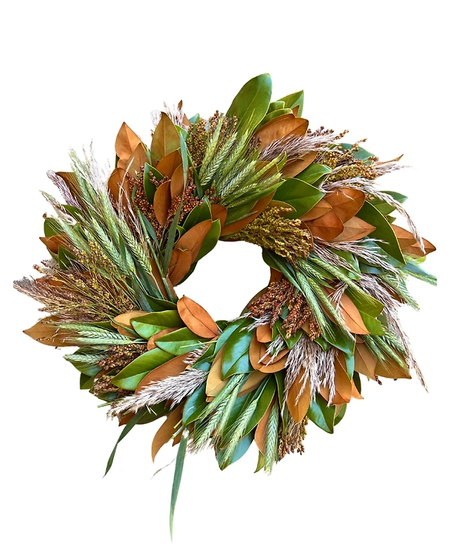 GreenishBlu Fresh Real Magnolia, Sorghum, Pampas and Wheat Wreath
