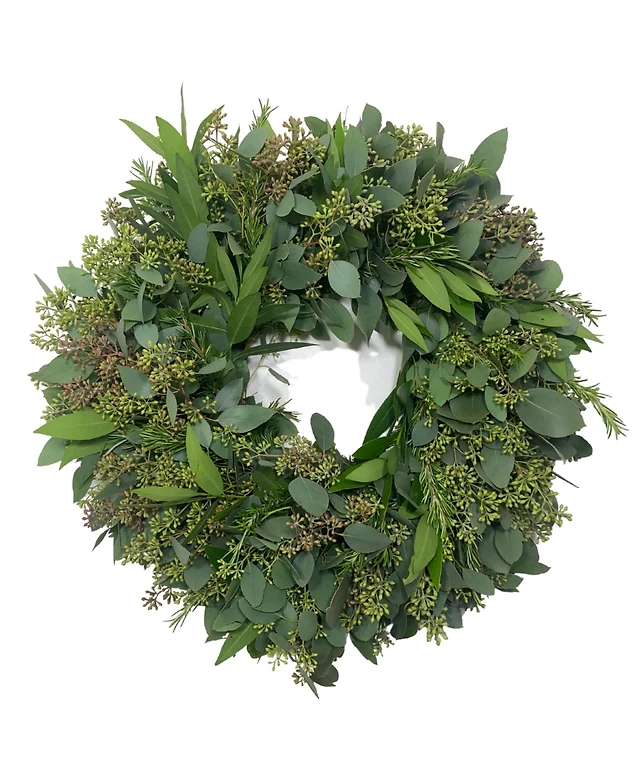 GreenishBlu Fresh Seeded Eucalyptus, Bay Leaf and Rosemary Wreath, 20"