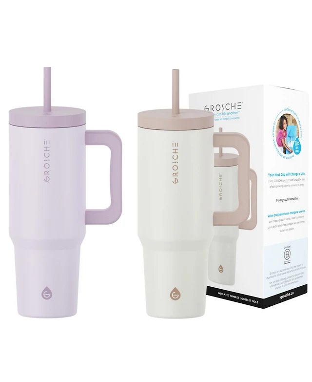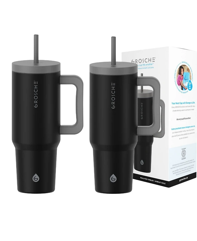 Grosche 40oz Insulated Tumbler with Straw and Handle, 2pk