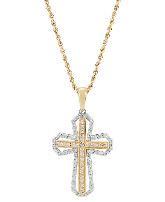 Grown With Love Men's Lab Grown Diamond Cross 22" Pendant Necklace (1 ct. t.w.) in 14k Two-Tone Gold