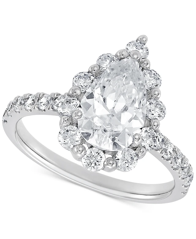 Grown With Love Lab Emerald (2-1/2 ct. t.w.) & Diamond (3/8 Pear Halo Ring 14k Gold (Also Sapphire)