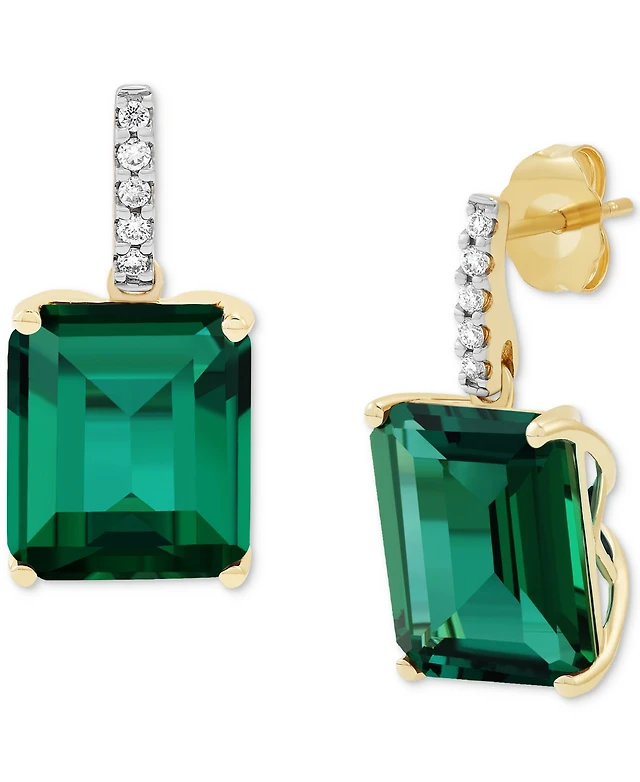 Grown With Love Lab Emerald (10 ct. t.w.) & Diamond (1/10 Drop Earrings 14k Gold